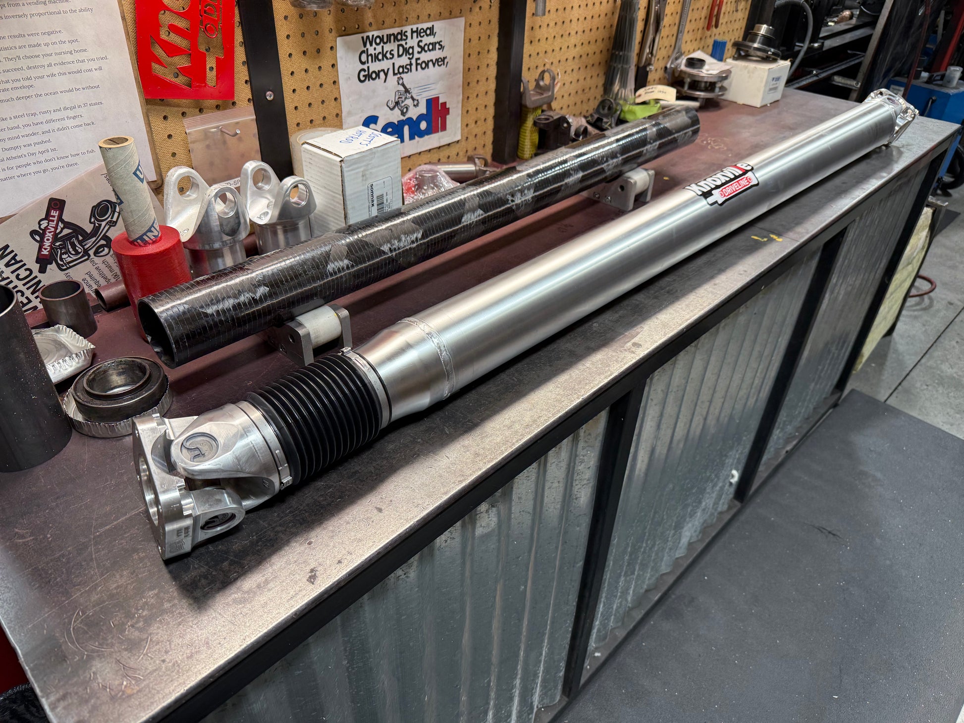 By replacing the heavy two-piece steel design, you also reduce rotational mass. That means smoother acceleration, quicker response, and less strain on the drivetrain. No carrier bearing, no CV joints—just a simple, reliable one-piece solution.